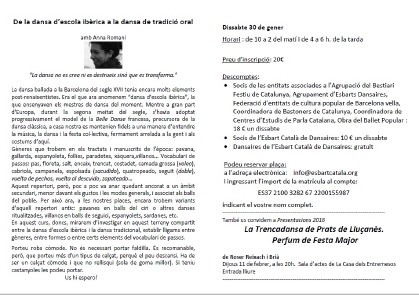 L’Esbart Català de Dansaires organitza el curs monogràfic De la dansa d’escola ibèrica a la dansa de tradició oral per conèixer la relació entre la dansa ballada a la Barcelona del segle XVII, i per extensió a Catalunya, i la dansa tradicional catalana.