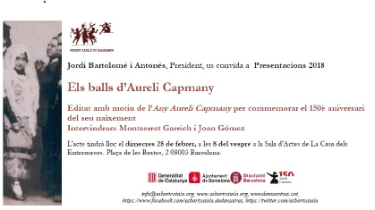 La presentació d’Els balls d’Aureli Capmany obre la programació Presentacions 2018 i és una de les activitats programades per l’Esbart Català de Dansaires amb motiu de l’Any Aureli Capmany.