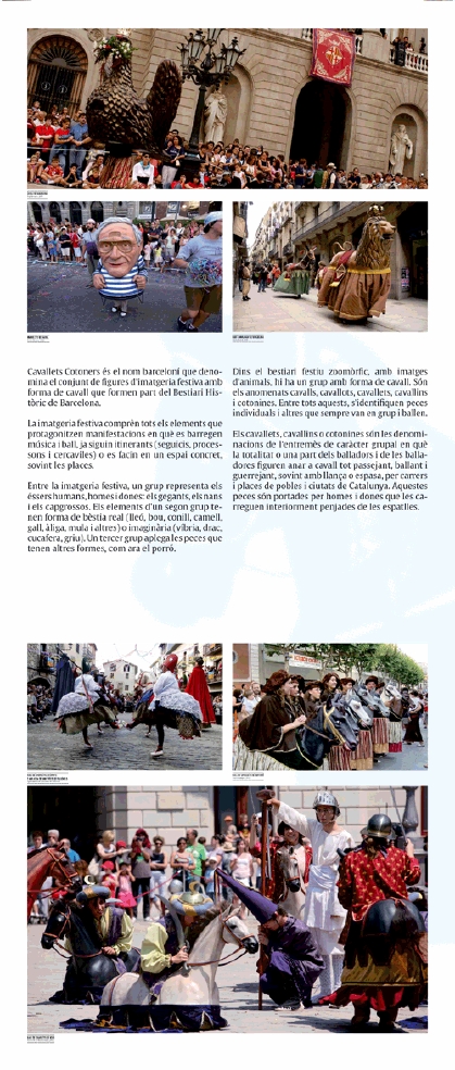 Consta de tres plafons autoenrotllables que presenten la diversa tipologia de la imatgeria festiva catalana i de vint-i-tres quadres amb fotografies dels cavallets entre 1934 i 2013.