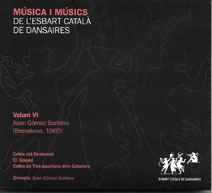 Autor: Gómez, Joan Títol: Música i músics de l’Esbart Català de Dansaires. Volum VI: Joan Gómez Soriano. Cobla del Centenari, El Grupet, Cobla de Tres Quartans dels Cotoners Lloc: Barcelona Editat per: Esbart Català de Dansaires, 2016 Format: CD |